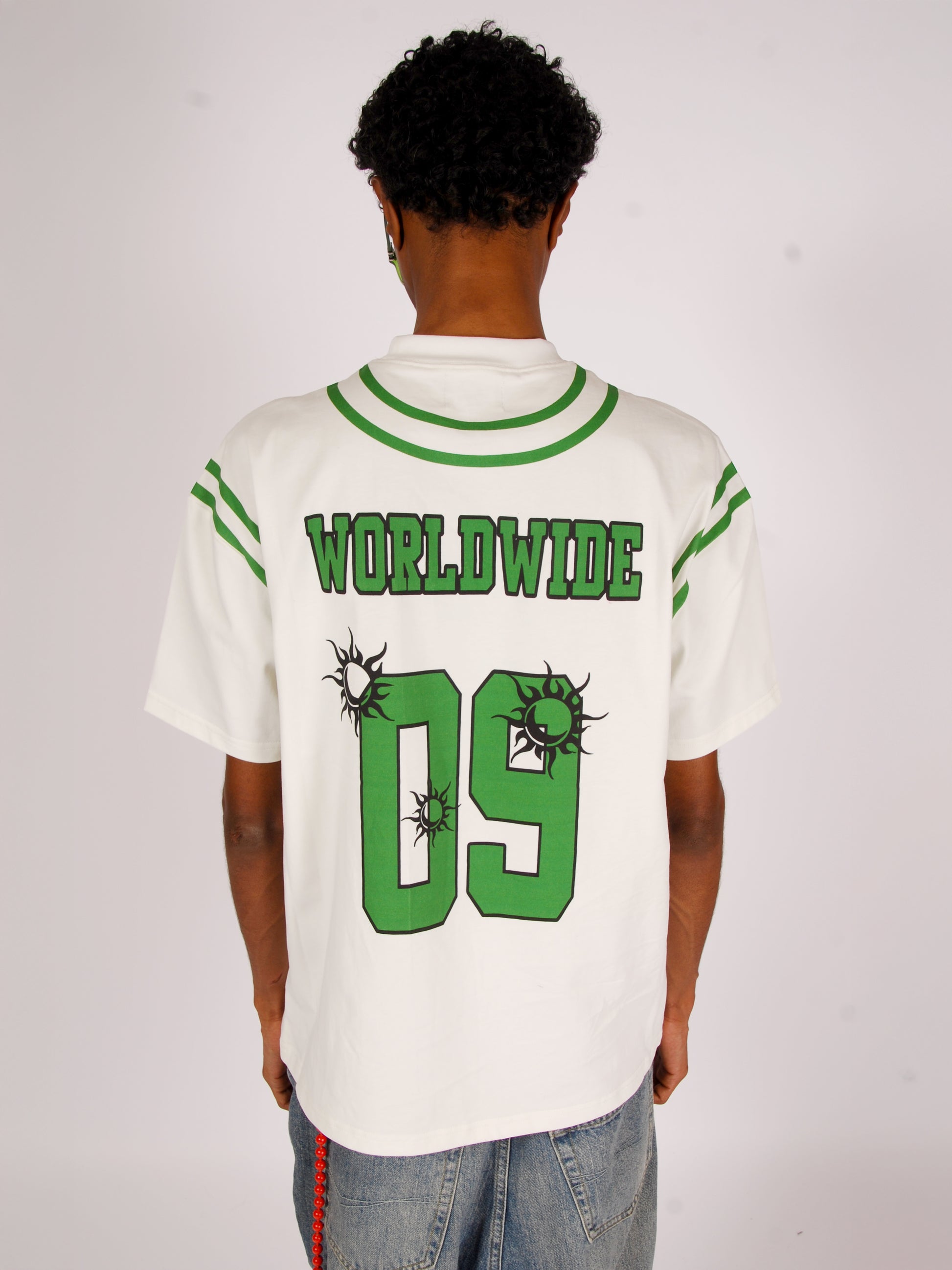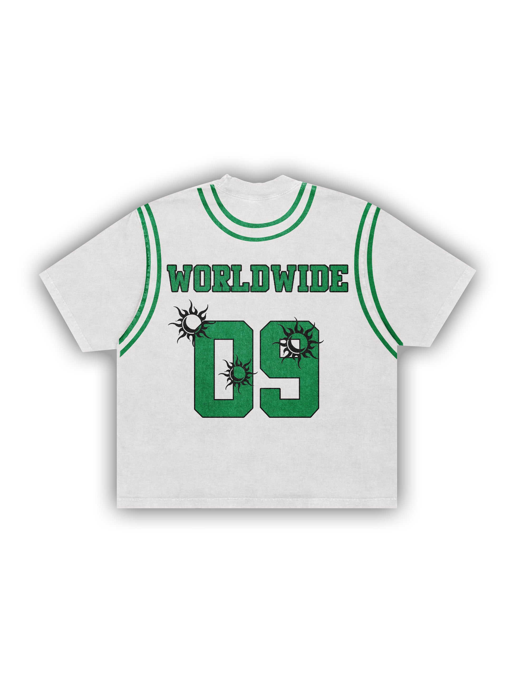 the jersey tee creates the illusion of a basketball jersey layered over a classic white tee.